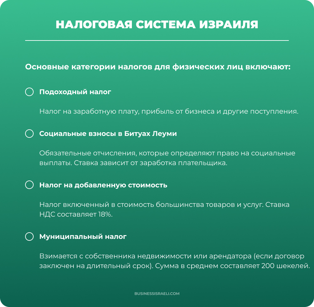 Для большинства новых граждан основным обязательством перед государством становится уплата налога на доходы. Налогообложение в Израиле построено на принципе прогрессивной шкалы, поэтому ставка зависит от уровня заработка и применимых льгот.
